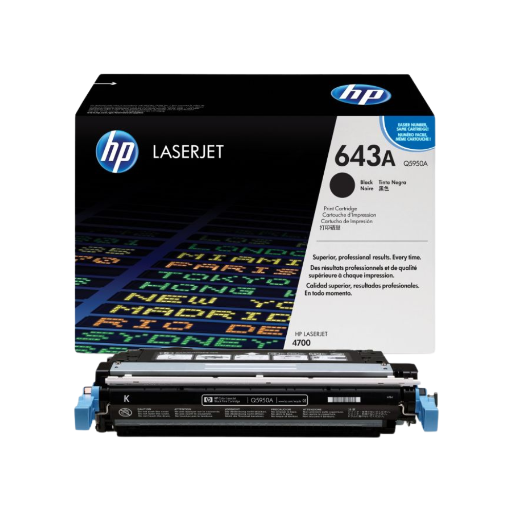 So the quality of printed or copied documents is important for your business or institution. As a result we provide premium quality compatible cartridges such as HP 643A Black Original Toner (Q5950A) (HP Q5950A/Q5951A/Q5952A/Q5953A) most importantly that perform the same as their original counterparts, but at a more attractive price. Thus we back up our claim with a 100% money back guarantee.