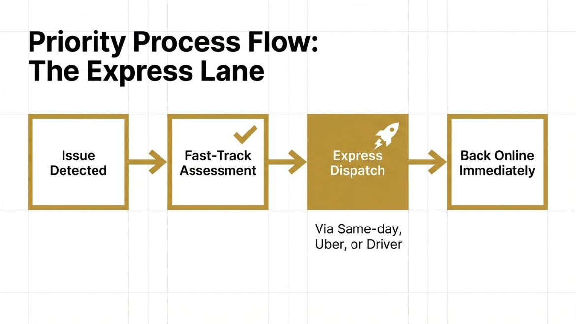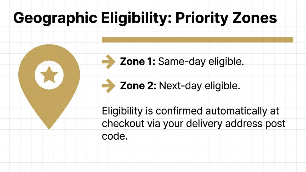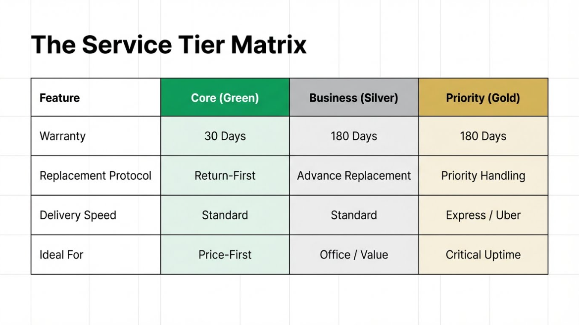 Delivery is standard, with faster options available at checkout. This tier significantly reduces downtime without the cost of express courier handling.